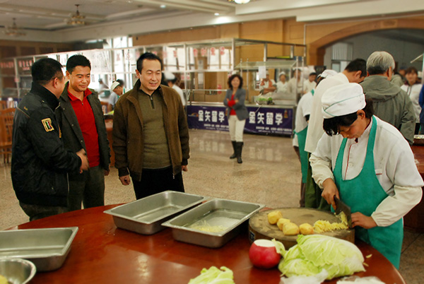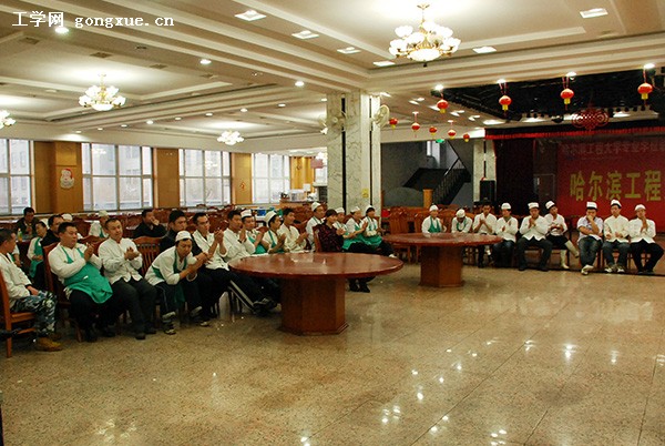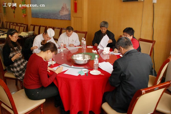 校长助理董国强、集团总经理李欣、党委书记张洪民等领导以及饮食服务中心员工观摩了此次比赛。大赛除专业评委外还特别邀请了学校伙委会的同学一同作为评委为选手们评判、打分。