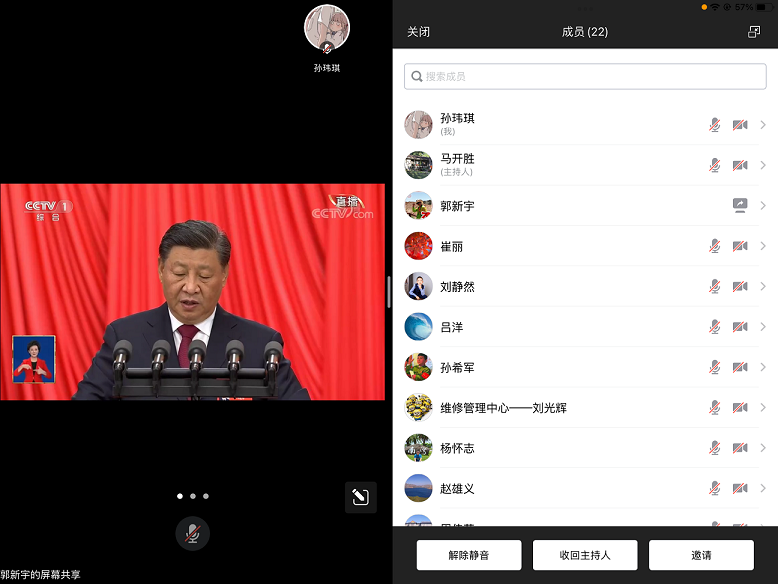 后勤集团中心组成员观看二十大开幕式