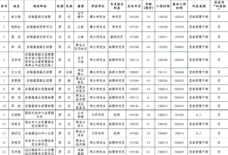 中共哈尔滨工程大学第五次党员代表大会后勤集团代表候选人预备人员公示