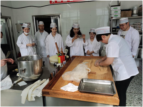 为深入贯彻学习习近平新时代中国特色社会主义思想主题教育,进一步深化“五个行动方案”,提升服务育人和实践育人工作,后勤集团产业党支部成功举办了第二期美食小课堂活动,于6月15日在国际交流中心开展。此次活动旨在为学生提供劳动实践机会,将劳动教育融入学生日常生活,通过学习菜品制作的过程中感受工匠精神,引导学生崇尚劳动、尊重劳动、乐于劳动。共有10名同学参加了本期美食小课堂活动,并由国际交流中心行政总厨杜广航和面点师张丽担任讲师。