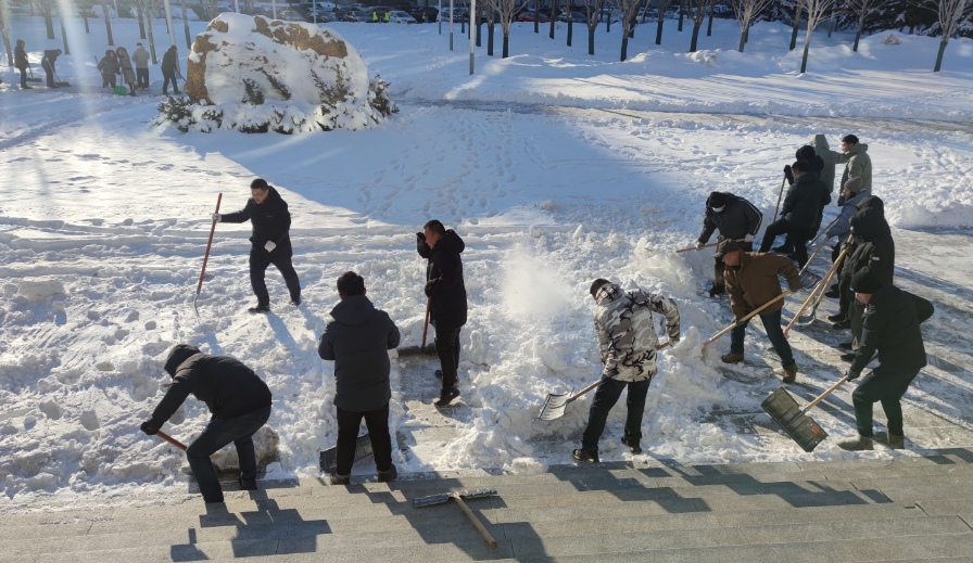 近日,受强冷空气影响,我市迎来了大范围的降雪。为了保障广大师生的正常出行,后勤集团党委积极应对,组织党员志愿者开展了一场大规模的清冰雪活动。