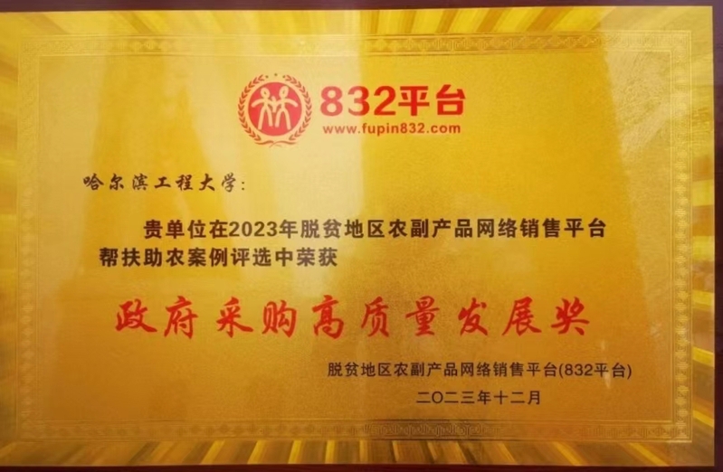 在全国脱贫地区农副产品网络销售平台(“832平台”)2023年度评选活动中,后勤集团荣获“政府采购高质量发展奖”,这一荣誉是对集团在助力乡村振兴、推动特色农村产业发展方面所做工作予以的肯定。