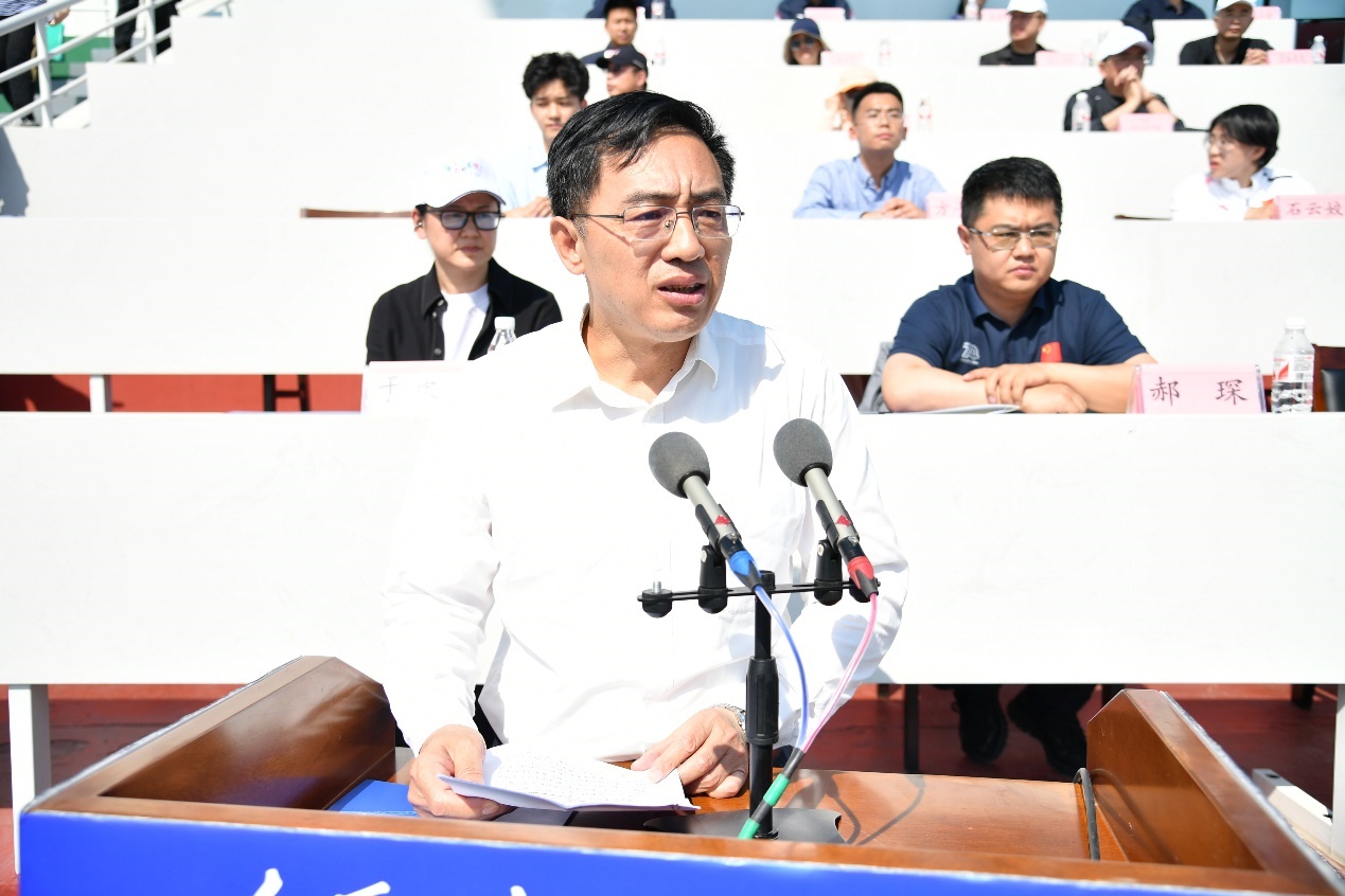 运动员入场仪式结束后,校党委书记高岩致开幕词。高岩感谢师生对学校体育事业的支持与贡献,并指出,学校正处于深入贯彻落实习近平总书记重要讲话精神,全民深化综合改革,推进教育科技人才一体化发展和"双一流"建设的关键时期。更需要要弘扬中华体育精神和哈军工传统,以健康体魄和昂扬斗志,肩负时代重任,投身世界一流大学建设,服务强国民族复兴。同时希望运动员们在赛场上勇于拼搏,展现哈工程师生精神风貌,取得佳绩。鼓励师生积极参与体育锻炼,营造健康运动氛围。将体育精神融入学习工作,攻坚克难,为建设特色鲜明世界一流大学而努力,为教育科技人才强国再立新功。