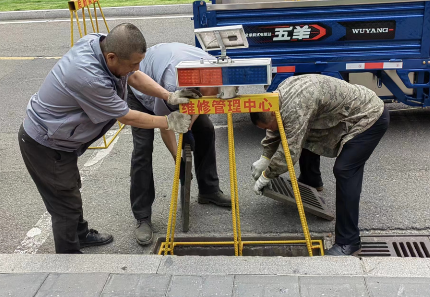 6月19日下午,黑龙江气象台发布了暴雨红色预警信号,预示着又一轮强降雨即将来临。维修中心迅速响应,截至当日17时, 8个自制的排涝口全部放置在指定位置,静待暴雨降临。