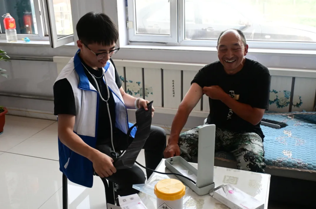走访经济困难学生家庭过程中,服务队成员免费为家里有疾病的老人提供了血压检测、血糖测量、心脏测听等服务,并向村民们普及相关慢性病、常见病健康预防知识,倡导大家要注意饮食,适当锻炼,如发现头晕、头痛等各类问题及时就医,确保做到早发现、早预防、早治疗,努力提升村民对自我健康管理的认识,并免费发放心脑血管、疼痛、抗炎等常见病药品。