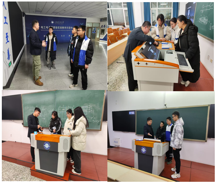 智慧教室负责人韩方超为学生们详细讲解了物业服务部的职责、多媒体技术员的工作流程及服务实例数据。通过案例分析,学生们了解到多媒体技术员如何在日常工作中织密教学保障网络,确保校园教学秩序的顺畅运行。同时还对智慧教室的网络安全工作进行了讲解,让学生认识到网络安全不仅涉及个人隐私和财产安全,也关乎国家关键基础设施的安全,每个人都需要具备网络安全意识。随后,学生还分组跟随技术员进入教学教室,亲身体验多媒体设备的日常维护流程,模拟课前巡查的标准化操作。